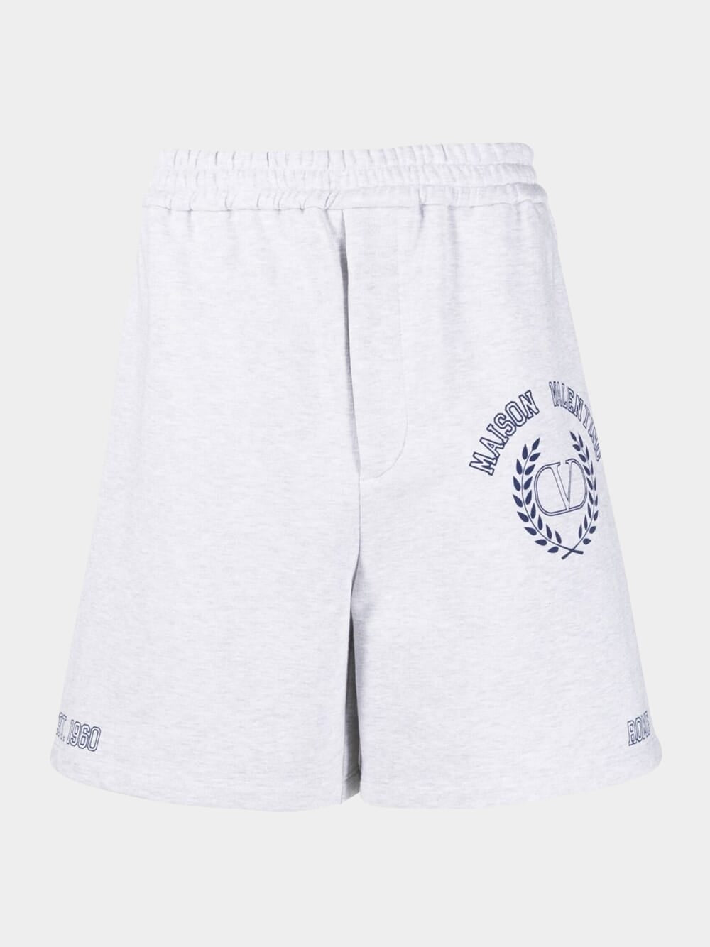 Valentino Gravani track shorts in cotton with elasticated waistband and logo print on front.