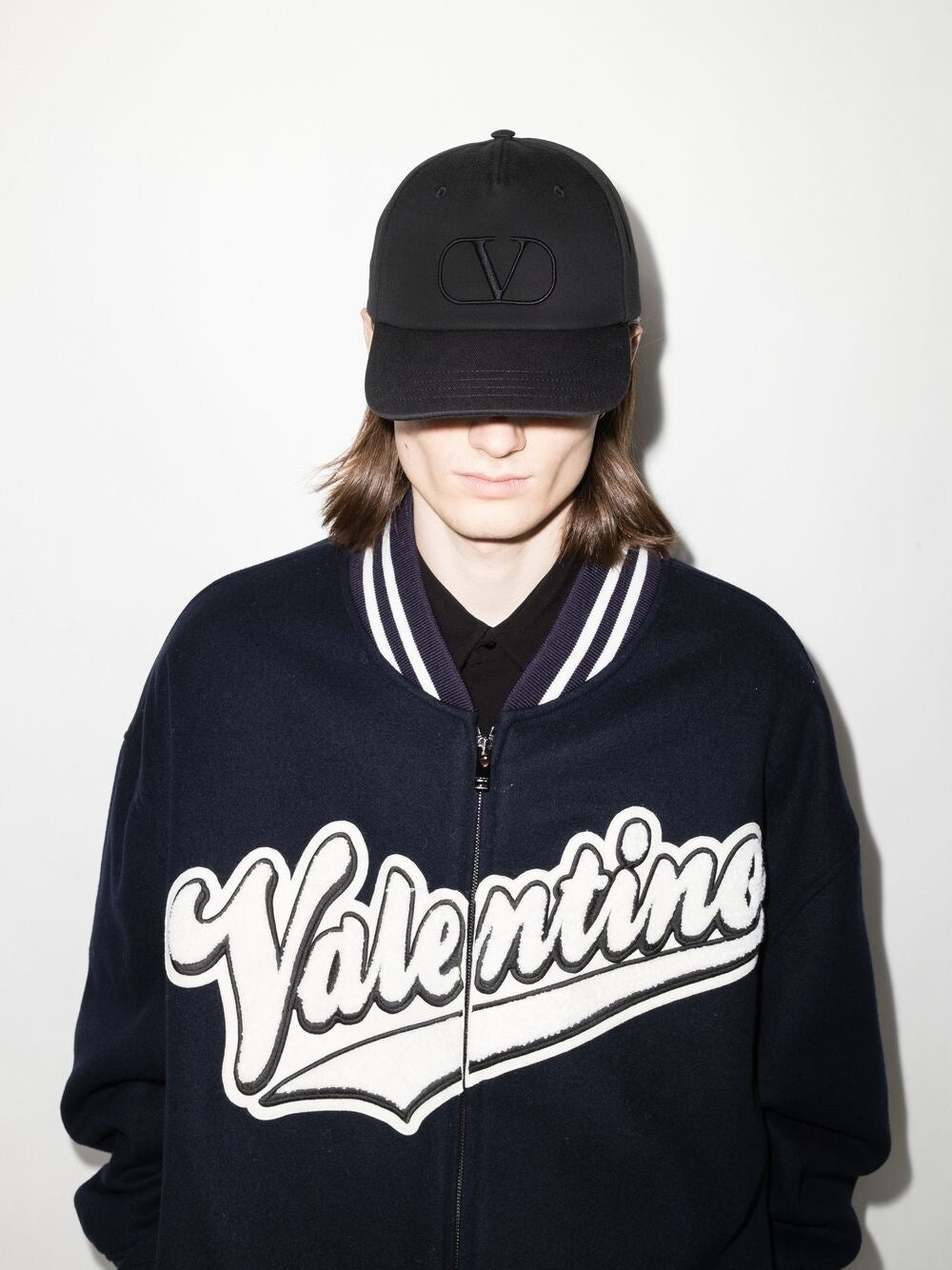 Valentino Garavani baseball cap in black cotton with VLogo signature embroidery on front and adjustable strap.