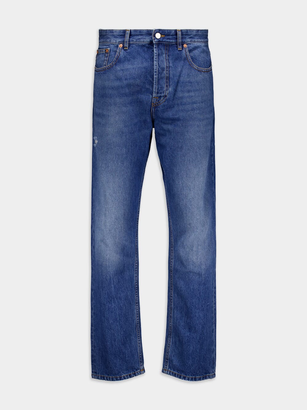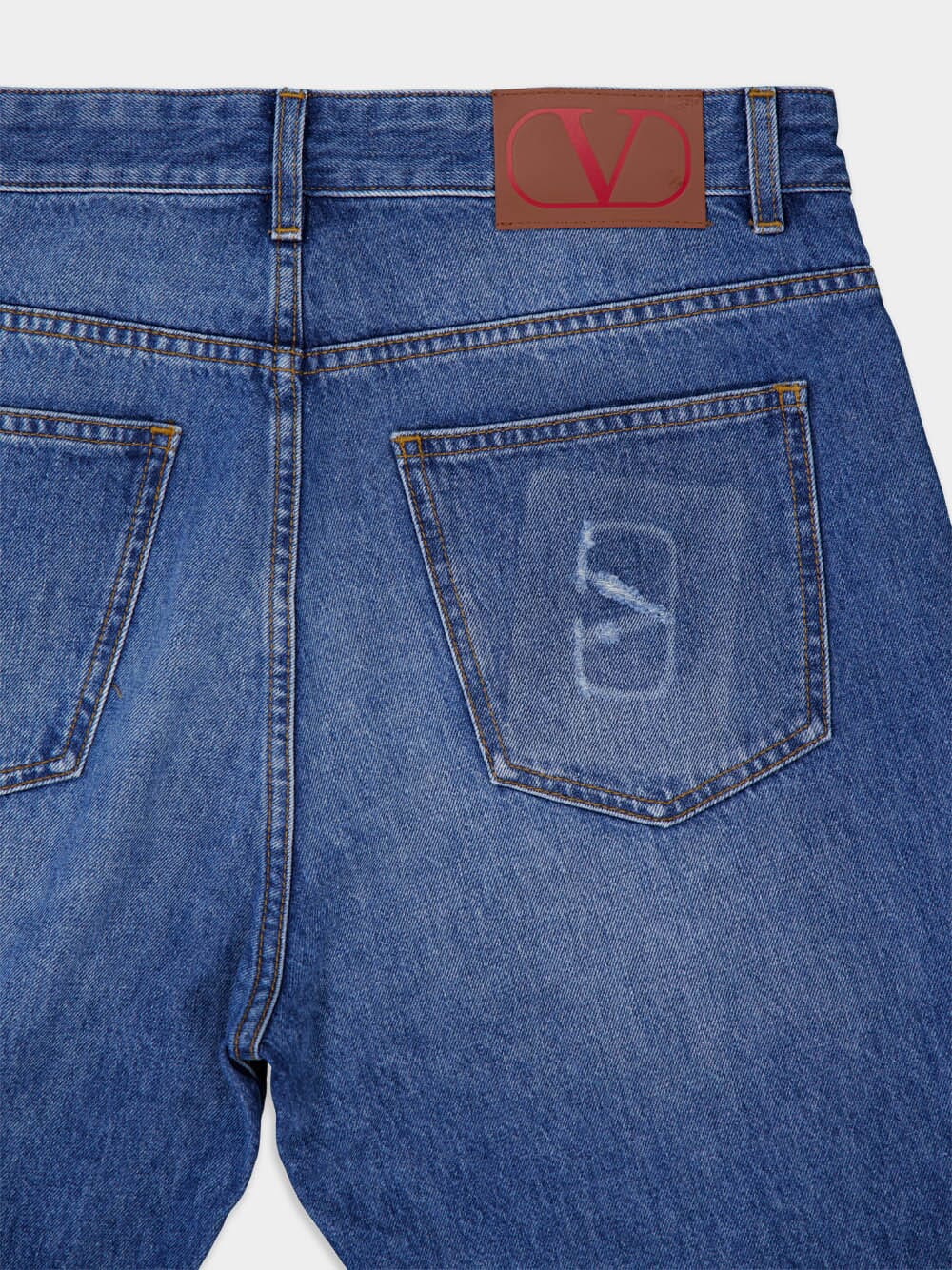 Vlogo Signature Cropped Faded Jeans, designed with a flattering mid-rise fit, these jeans are the epitome of effortless chic. The front button and concealed zip fastening ensure a secure and stylish closure. Complete with belt loops and five pockets, these jeans blend practicality with trend-setting appeal. Adorned with a sleek leather logo patch at the rear, they exude premium craftsmanship.