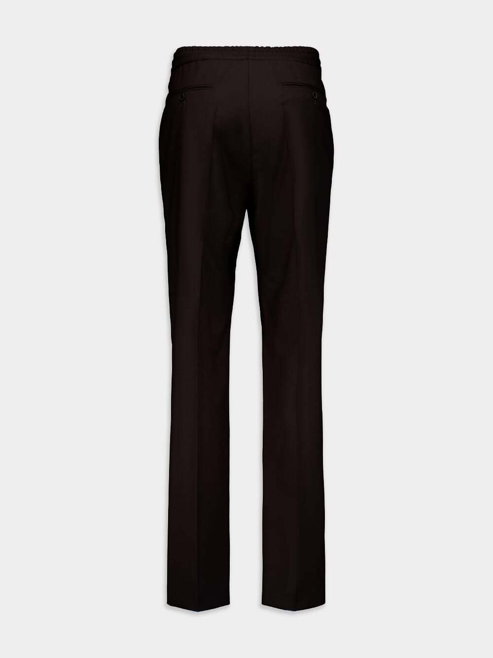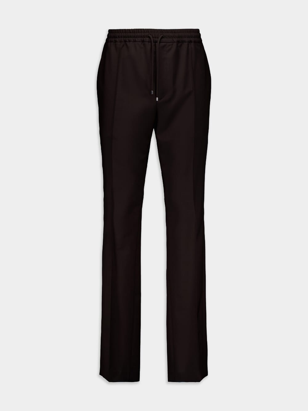 Wool and mohair track pants, featuring a luxurious blend of materials for a premium feel. The elastic and drawstring waist ensures a perfect fit, adapting to your body's contours effortlessly. Designed for practicality, these track pants come with front slant pockets, adding convenience without compromising on elegance.
