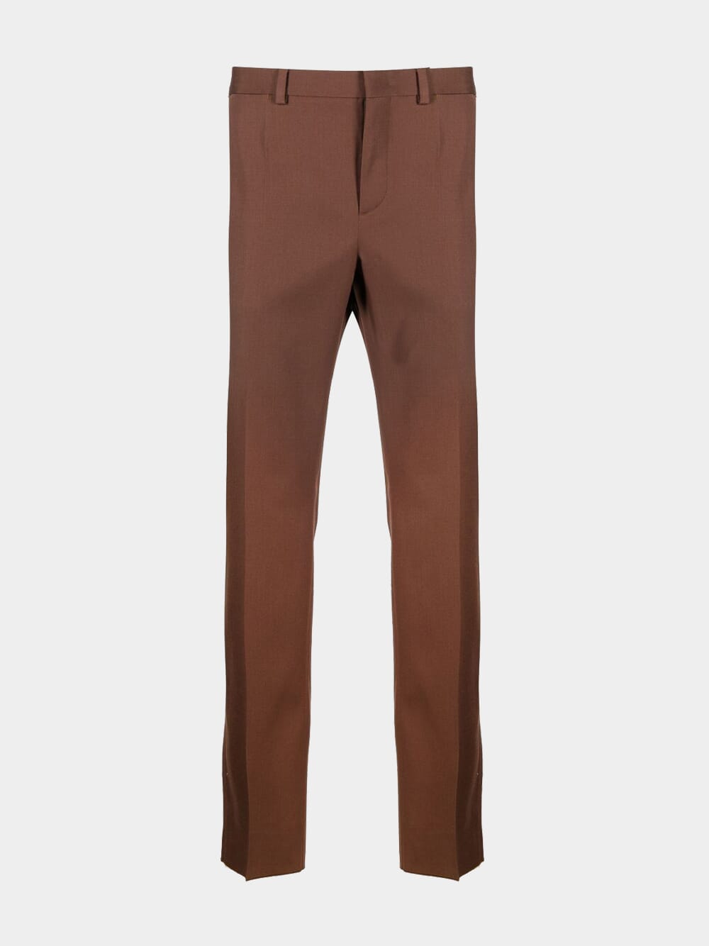 Valentino Garavani slim fit wool trousers featuring two side pockets and two rear pockets.