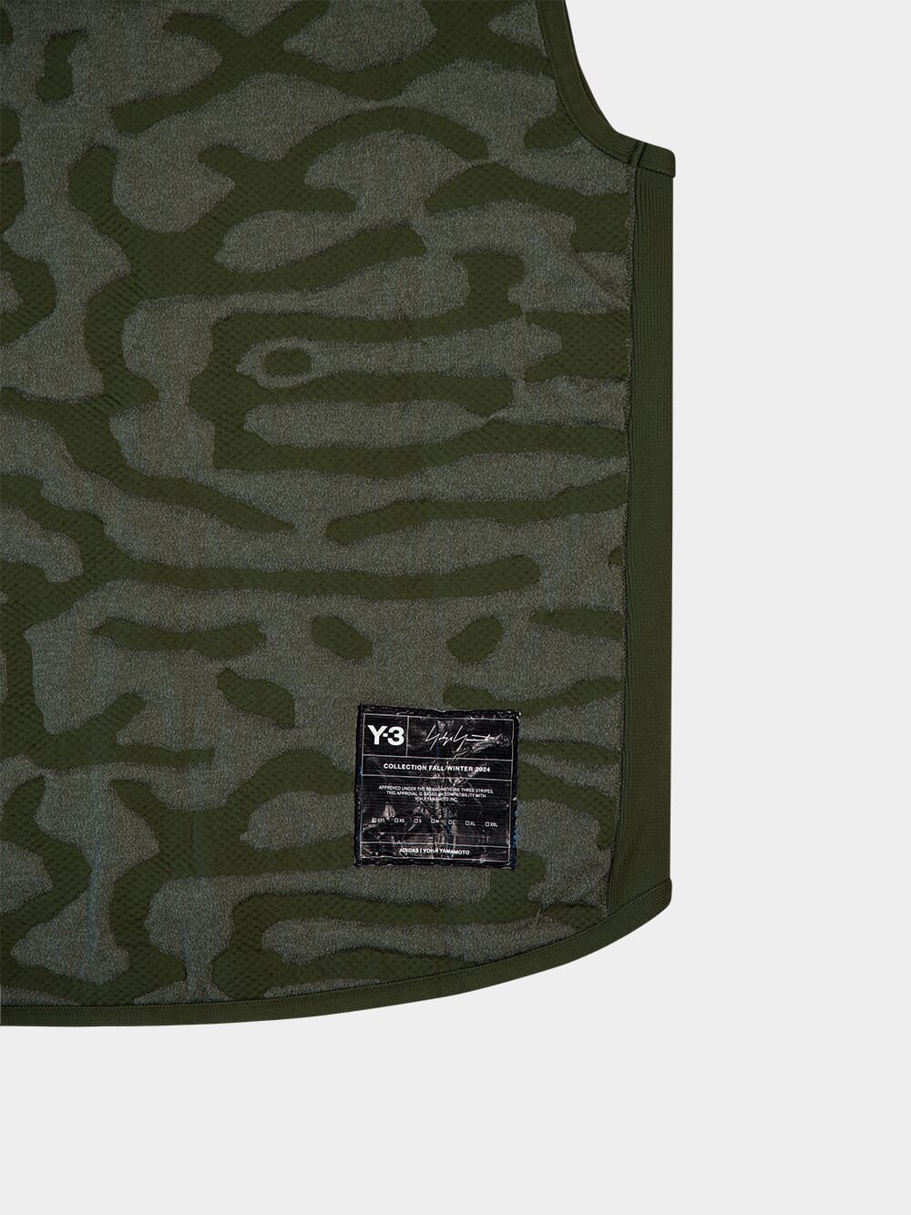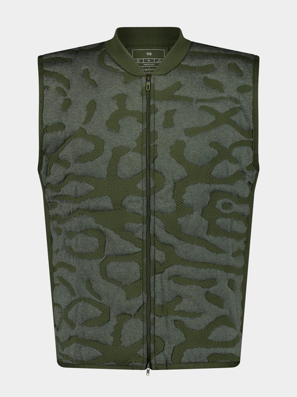 This khaki green vest by Y-3 combines functionality with a modern, urban aesthetic. Crafted from lightweight, breathable fabric, it features a zip-up front and a unique camouflage-inspired pattern for added style. The sleeveless design and relaxed fit make it ideal for layering in various seasons, providing both versatility and comfort. Finished with subtle branding, this vest adds a contemporary edge to any outfit, perfect for the active, fashion-forward individual.