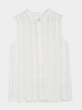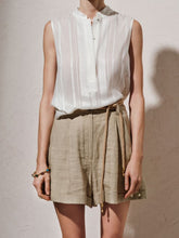 Handmade in Greece, this Hera top is a blend of delicate craftsmanship and refined style. The sleeveless design and mao collar are elevated by the textured silk, creating an ethereal white garment that breathes sophistication into any wardrobe.
