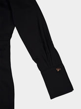 This midi dress presents a timeless monochrome palette with a striking white panel that runs down its front, creating a sleek visual contrast. The fitted silhouette and long sleeves make it an elegant choice for business events or sophisticated evening affairs.
