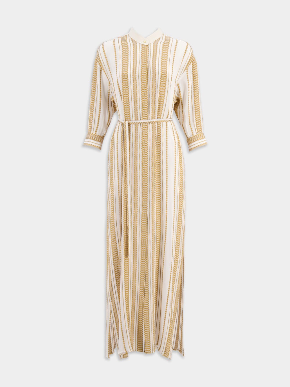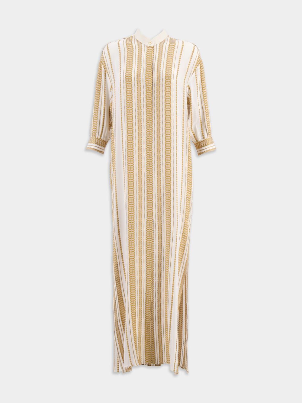 Maira midi loose-cut caftan with stand-up collar and bottom slits crafted. This caftan is versatile, refined and modern. Made from high-quality materials, it offers a comfortable and breezy fit. With its midi length and flowing silhouette, it exudes effortless elegance and grace.
