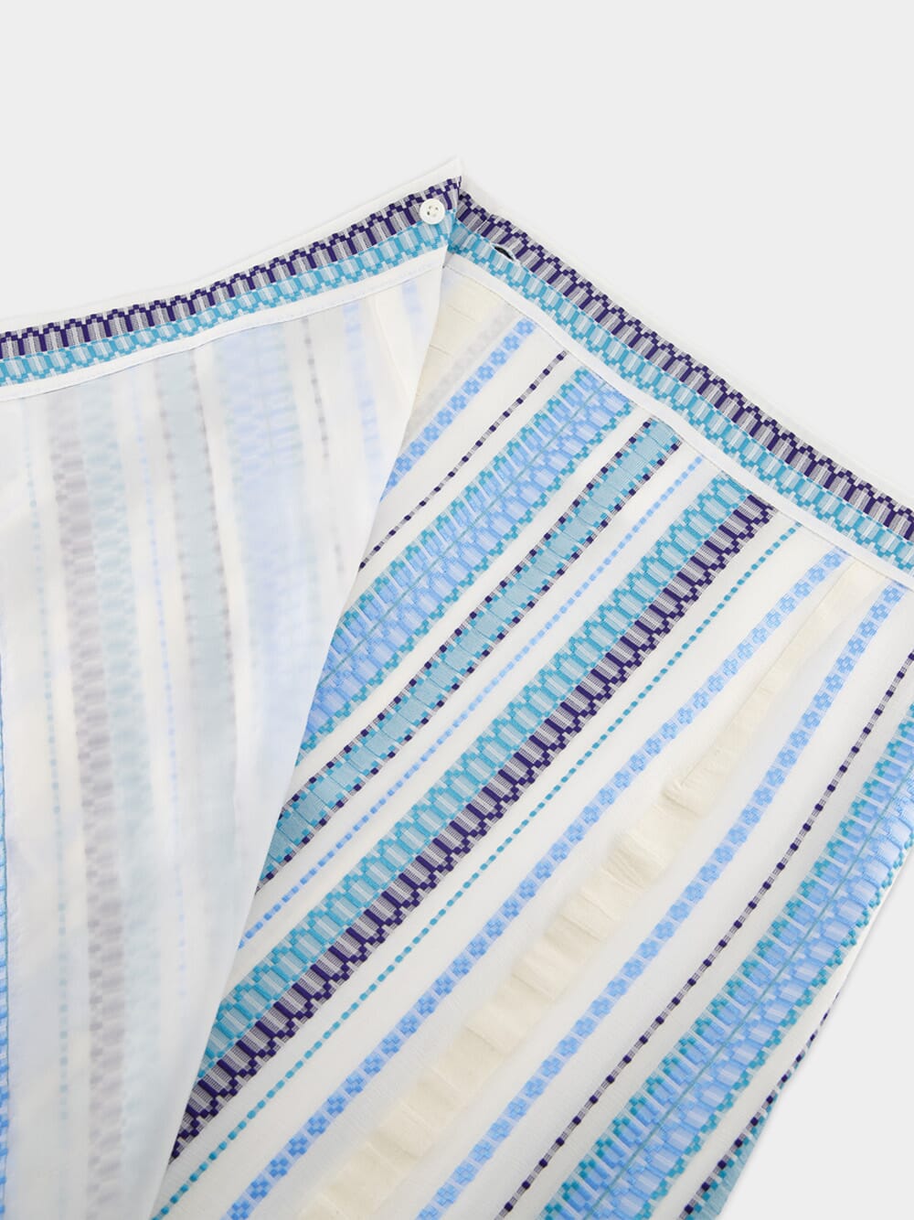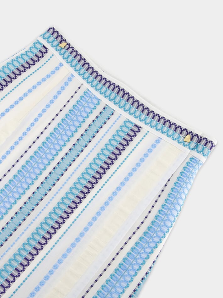 Midi silk skirt crafted with meticulous attention to detail, this blue silk skirt offers a timeless and sophisticated appeal. Made from high-quality silk, it provides a smooth and elegant feel. With its midi length and flowing silhouette, it exudes effortless grace and style.