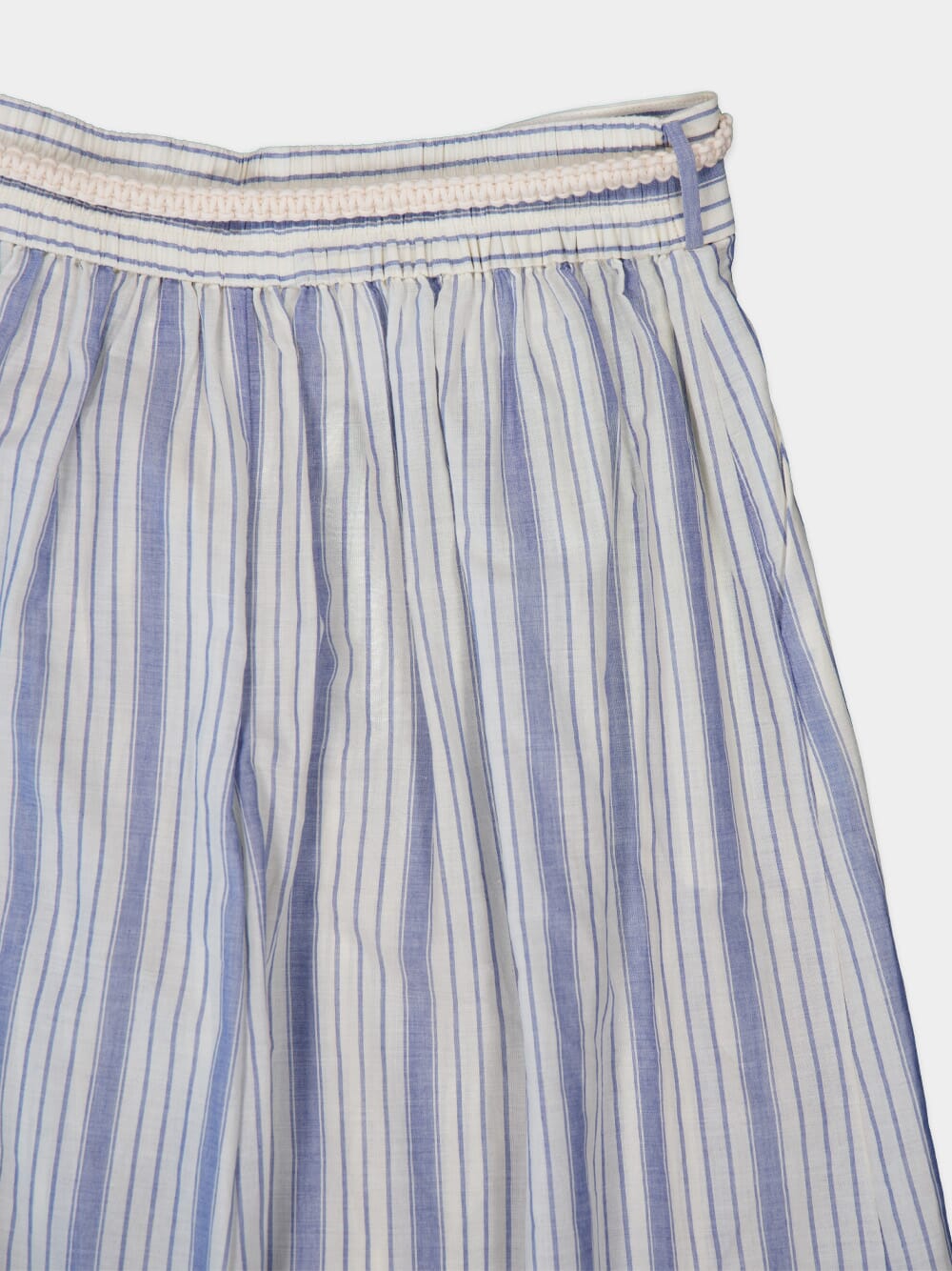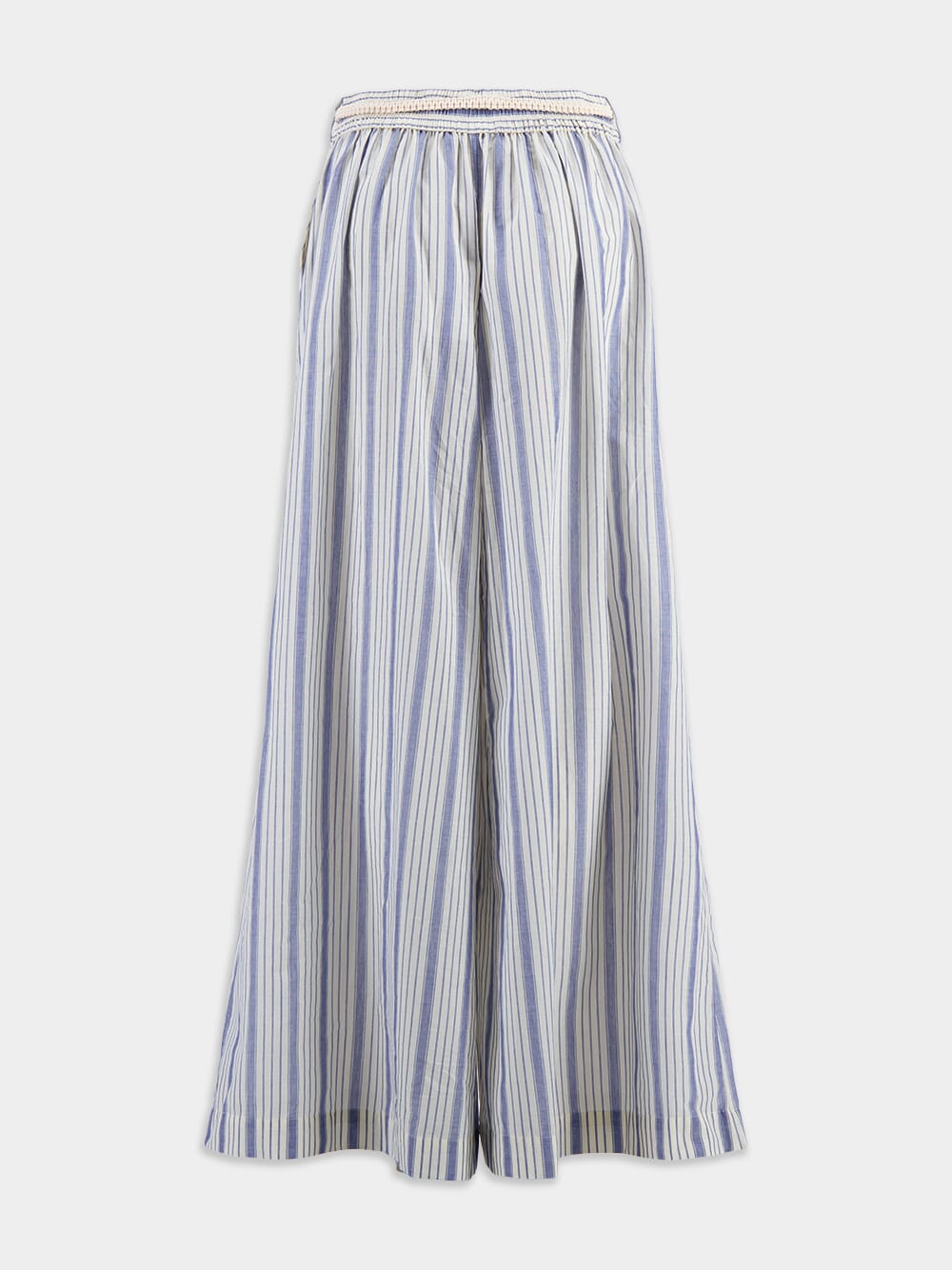 Chintz Striped Relaxed Pant, crafted with a relaxed fit and featuring an elastic waistband, these pants offer a flattering and comfortable fit for all-day wear. The side seam pockets add functionality and convenience, while the removable belt allows for versatile styling options. Adorned with placement stripes, these pants effortlessly elevate any outfit.