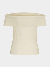This off-shoulder cream top combines elegance with contemporary design. The fold-over neckline exudes sophistication, while the form-fitting shape flatters the figure. Perfect for a refined yet trendy look.