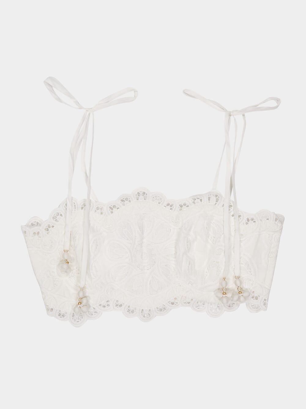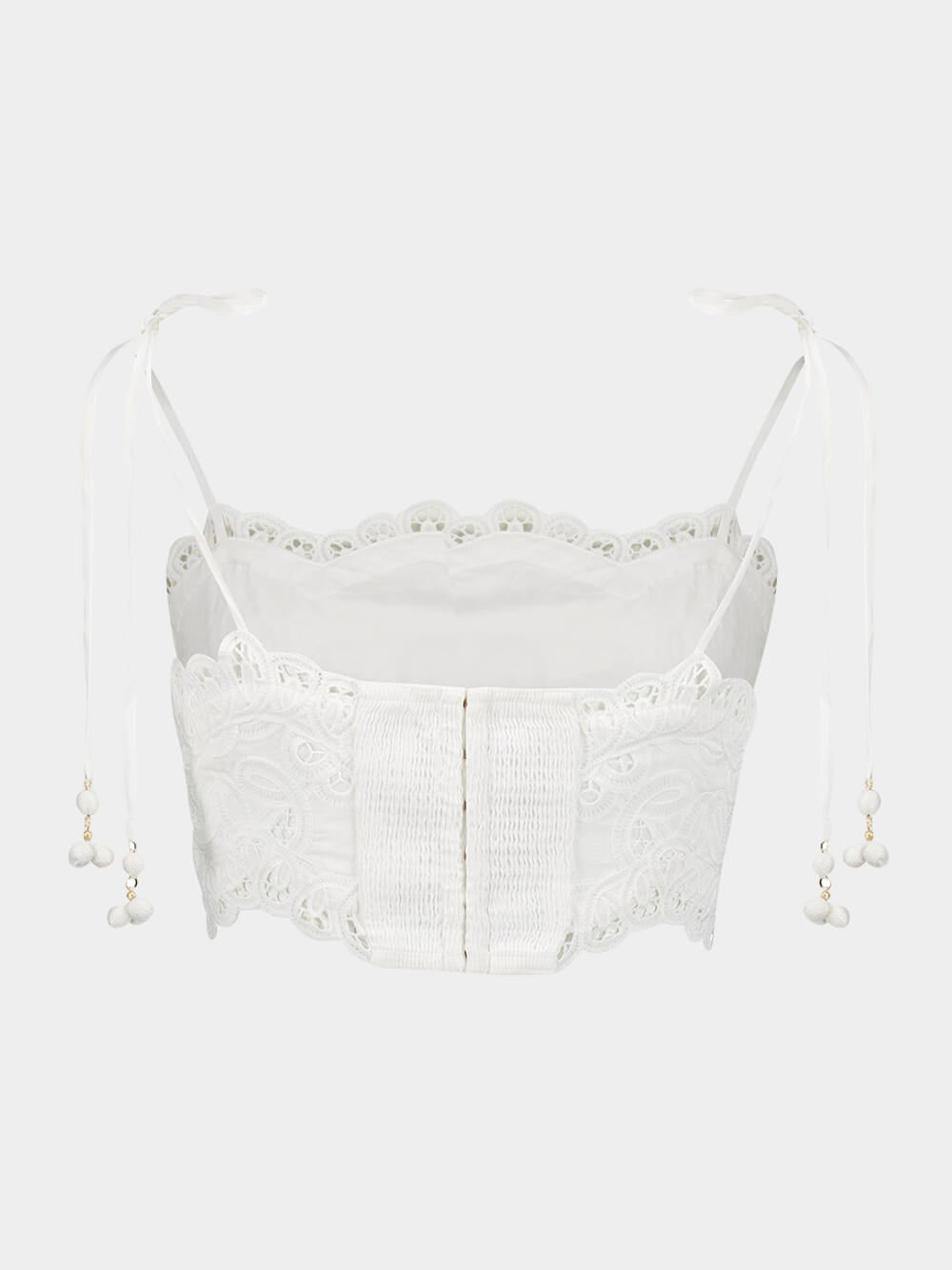 The Ottie Embroidered Bodice is a charming addition to any summer wardrobe. This cropped bodice is crafted from high-quality cotton and features delicate embroidery throughout. The side seam boning and center back shirring provide structure and a comfortable fit, while the hook and eye closure ensures ease of wear. The bodice is fully lined for added comfort. With its intricate detailing and elegant design, this piece is perfect for pairing with high-waisted skirts or pants for a chic, summer look.