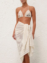 The Palm Crochet Pareo is a versatile accessory perfect for beach days and tropical getaways. Made from high-quality cotton, this large rectangular pareo features frayed edges and an intricate placement print throughout. Its elegant design showcases palm motifs, adding a touch of island charm to your ensemble. Ideal for use as a wrap, scarf, or beach cover-up, this pareo is both stylish and functional, making it an essential addition to your summer wardrobe.