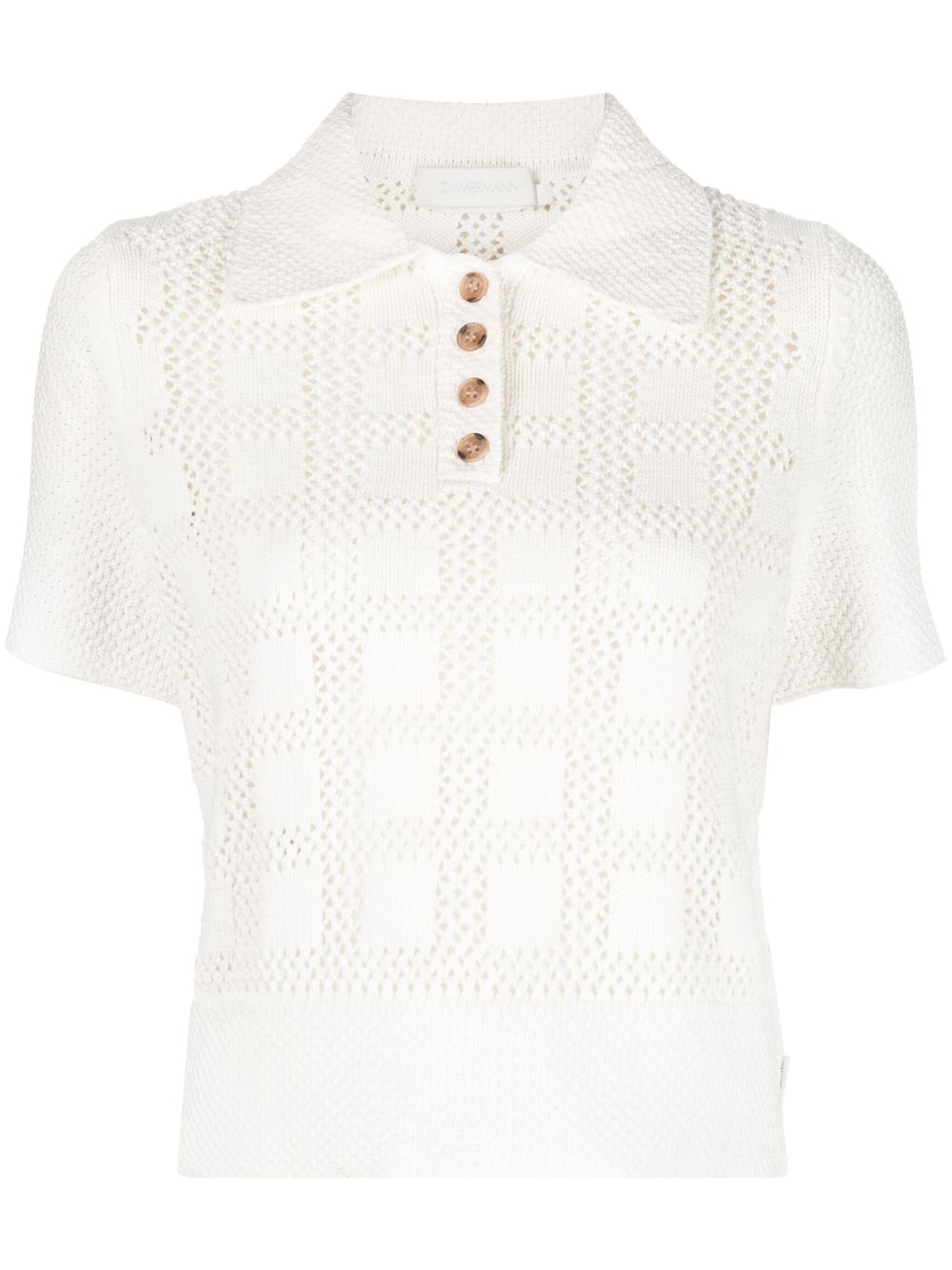 Zimmermann lyre polo top in ivory cotton featuring a classic collar.