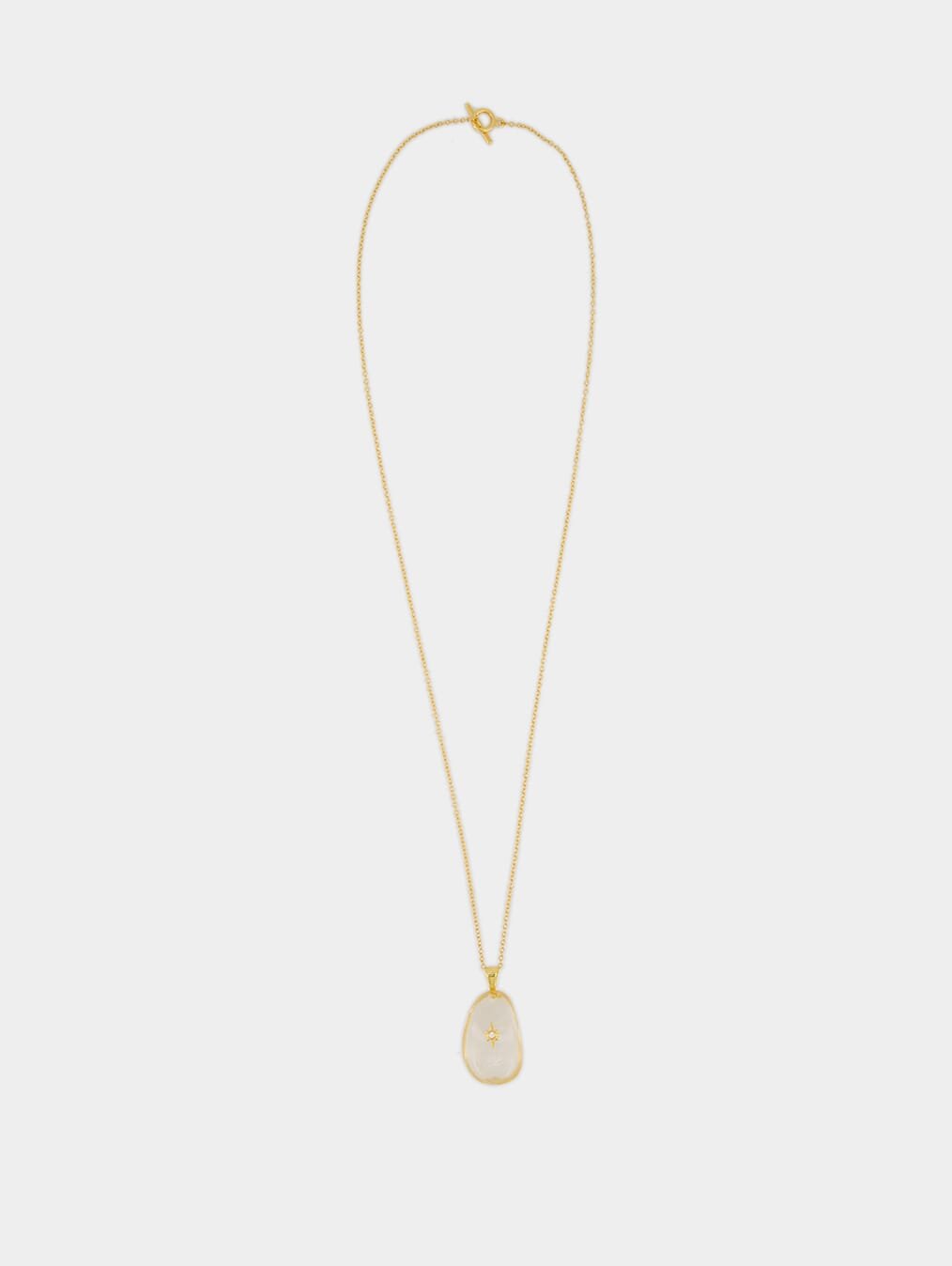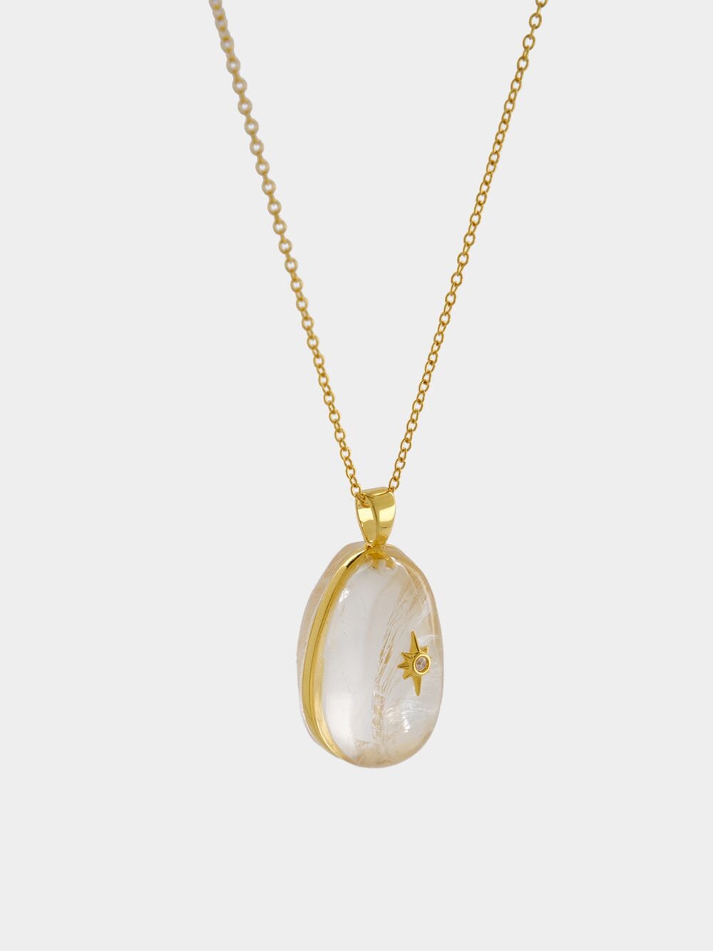 Crystal Pebble Necklace, meticulously crafted from 20KT gold plated brass, adorned with radiant white cubic zirconia stones. This exquisite necklace features a fixed length design and a secure T-bar fastening, ensuring both elegance and ease of wear.
