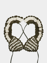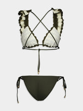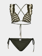 Zimmermann Devi Triangle Crochet Bikini crafted with meticulous attention to detail, this khaki and cream crochet bikini offers a boho-chic and earthy appeal. Made from high-quality materials, it provides a comfortable and flattering fit. With its triangle top and adjustable ties, it ensures customizable support and coverage.