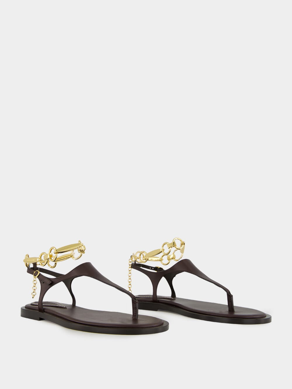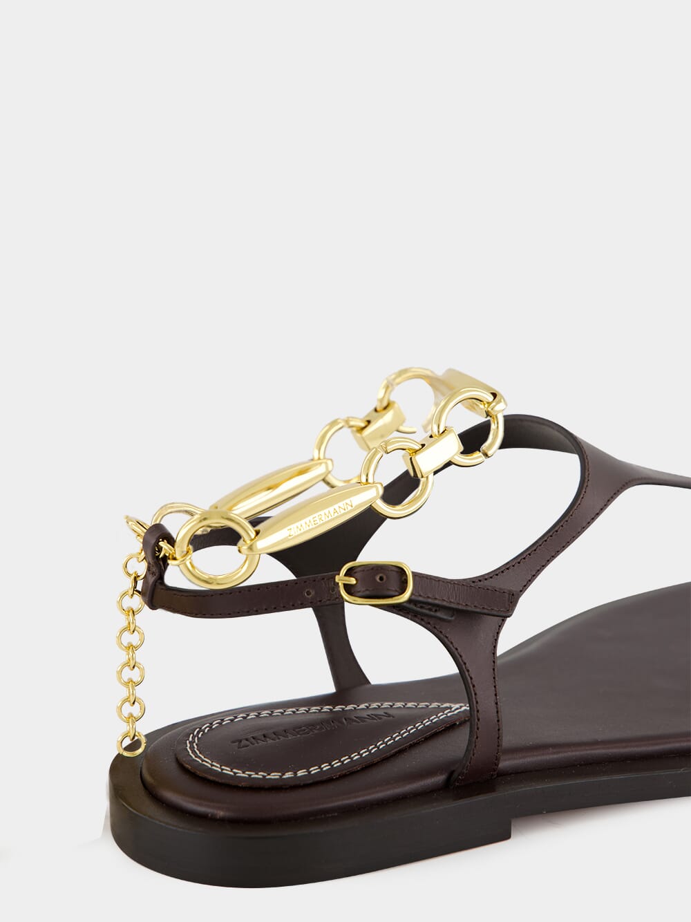The Wild Sandal in Espresso from Zimmermann is a refined interpretation of the classic thong sandal. Crafted in Italy from premium leather, it features a rounded toe and slender leather straps for a minimalist silhouette. The removable branded anklet hardware adds a signature accent, offering the option of elevated detailing or understated elegance. Finished with a leather outsole and 10mm heel, it balances comfort with sophistication for warm-weather dressing.