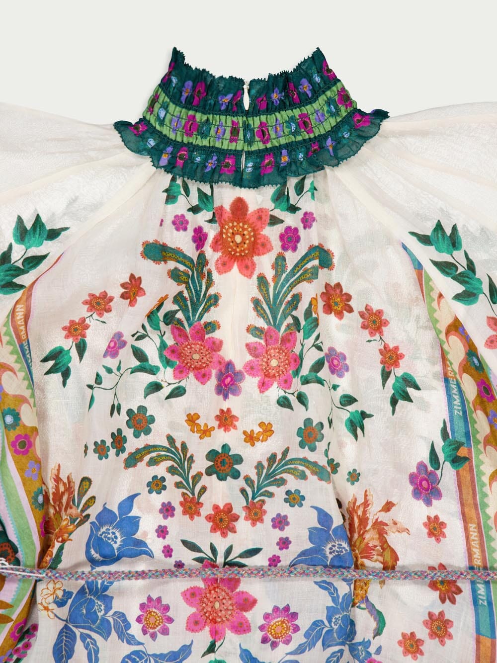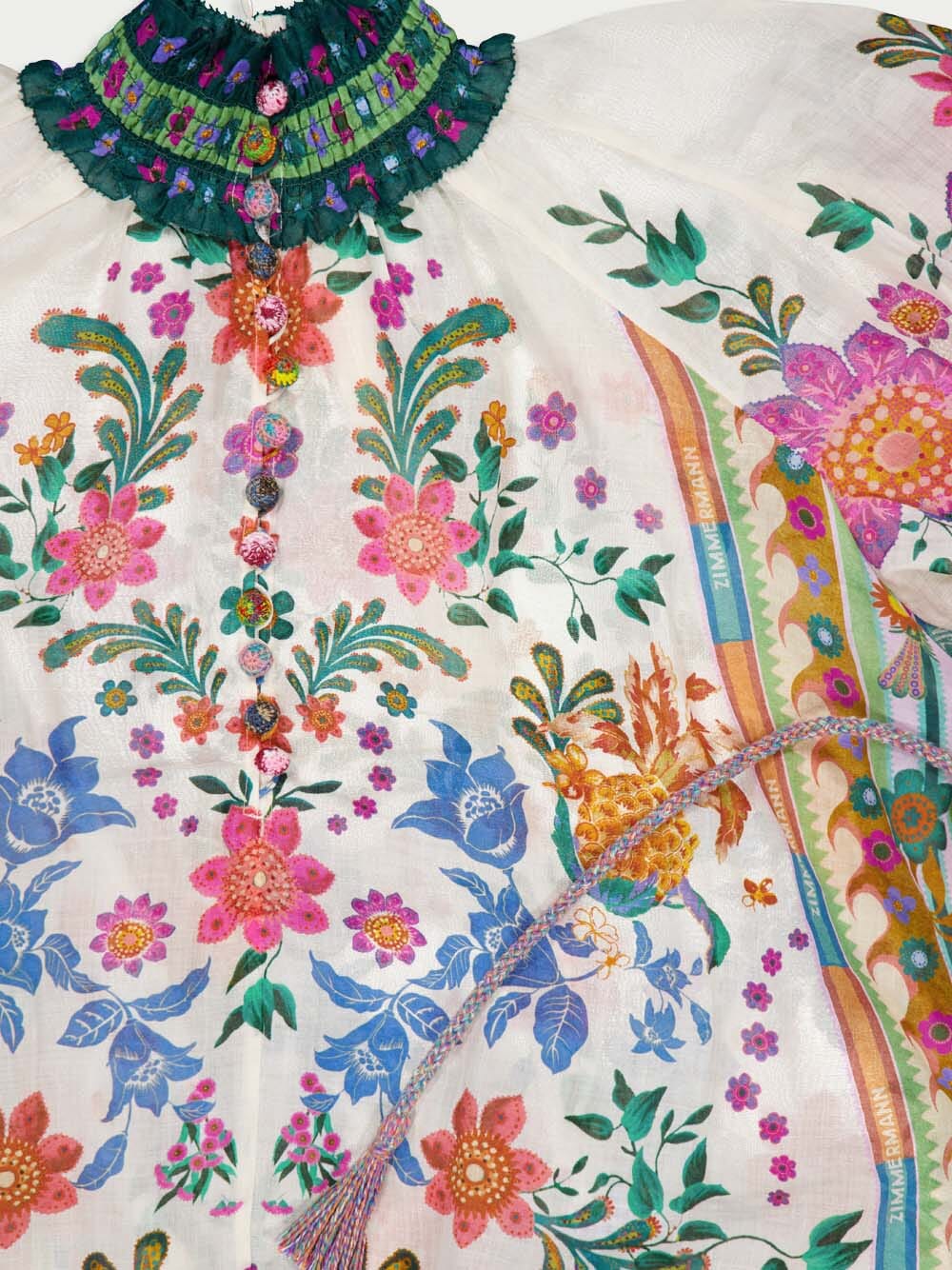 Ginger Swing Maxi Dress, crafted with meticulous attention to detail, this dress features a shirred collar and cuffs that add a touch of elegance to your ensemble. The crochet buttons at the centre front bodice provide a unique and fashionable twist. The frilled edges create a feminine and playful look, while the side seam pockets offer convenience and functionality. With a removable waist tie, you can effortlessly customize your fit and accentuate your curves. The invisible zip at the centre back ensures a seamless and effortless wearing experience. This dress comes with a separate slip, adding an extra layer of comfort and versatility.