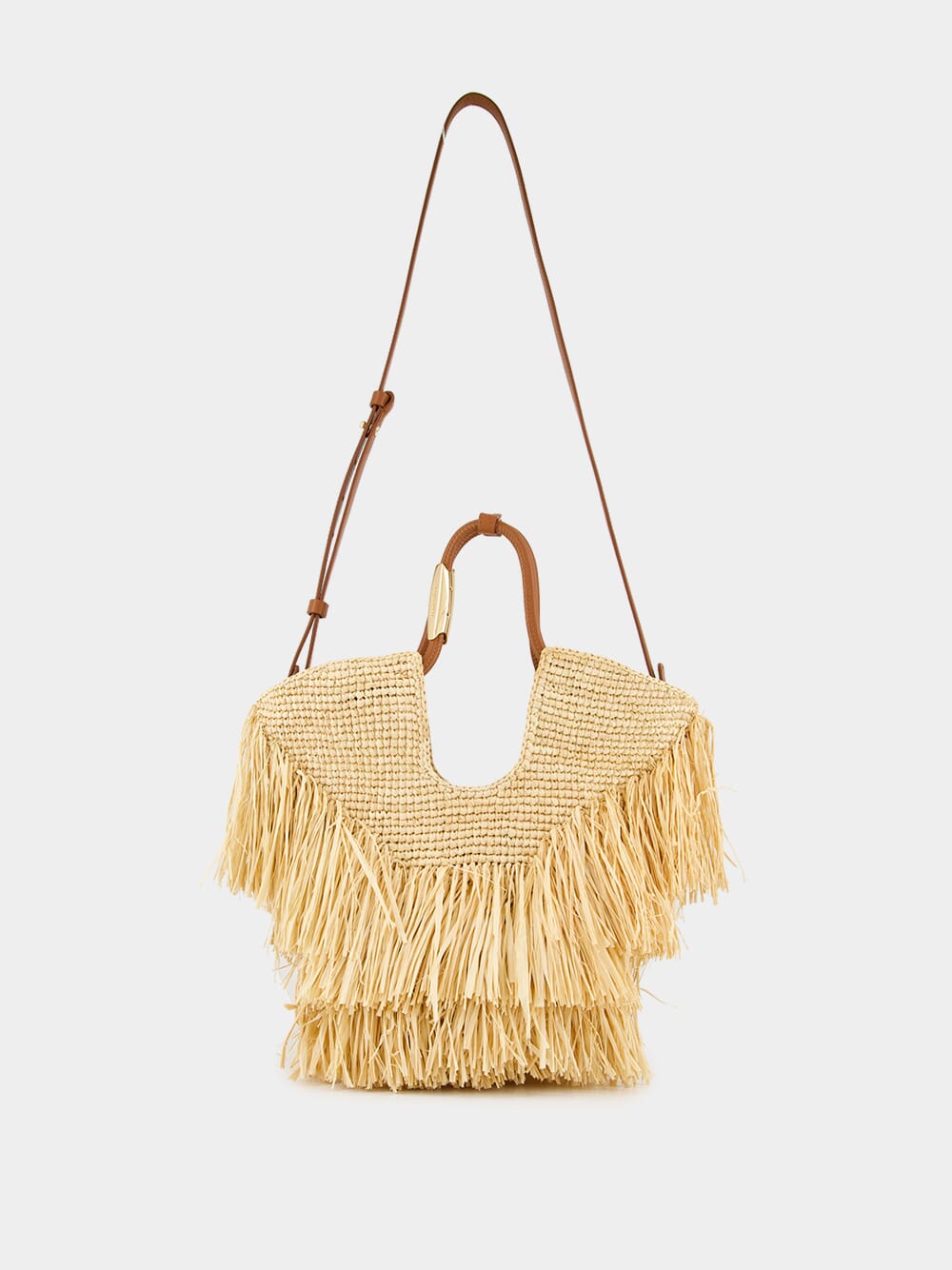 Natural Goldentime Small Raffia Fringe Tote