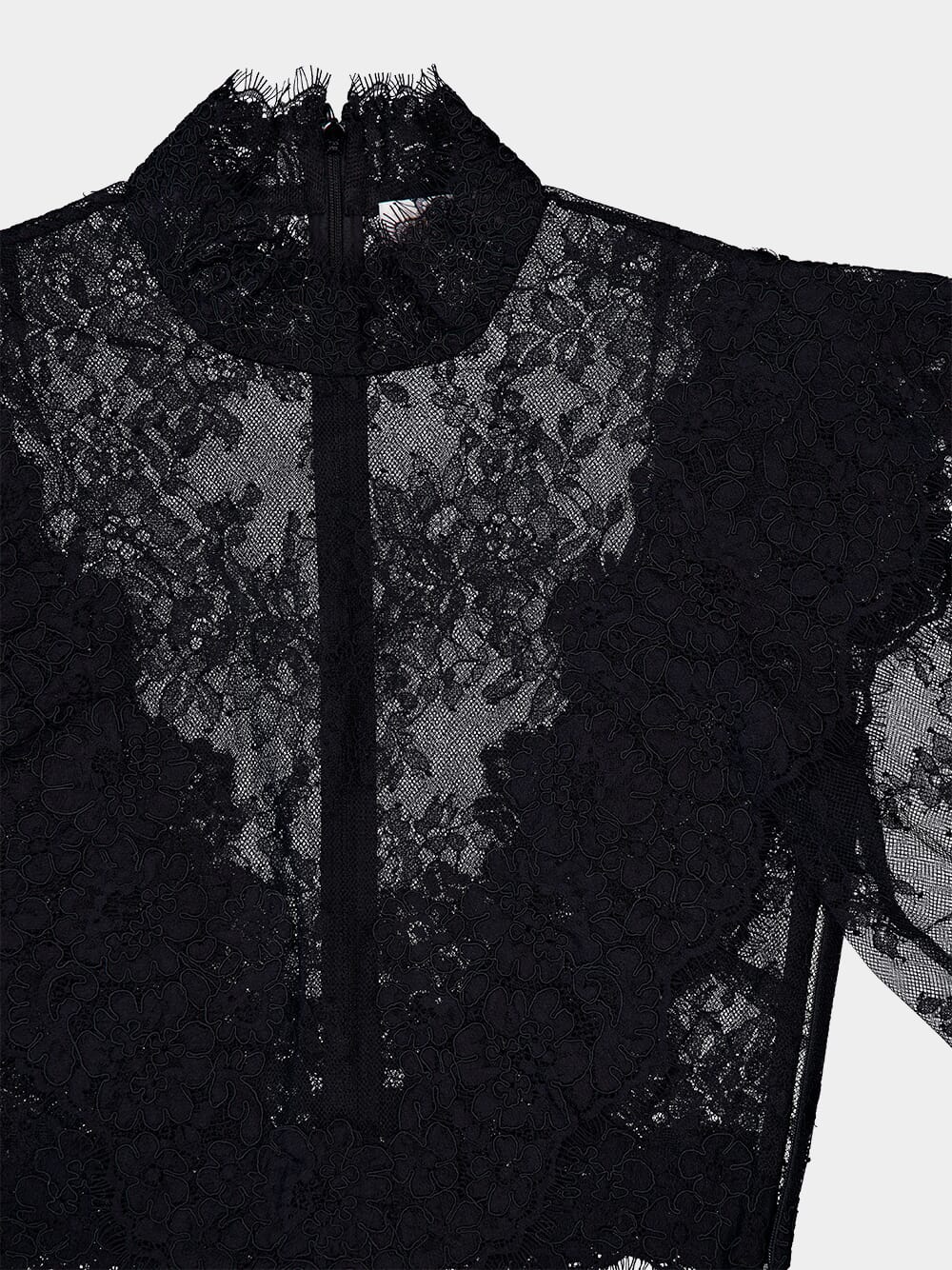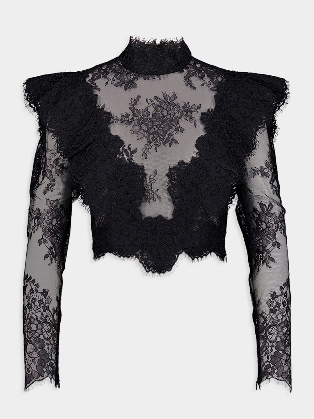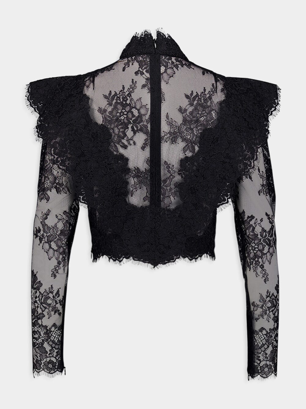 Sensory Lace Bodice Cropped Top, a timeless blend of elegance and allure with a lace bodice and cropped length. Corded lace trims and delicate tulle inserts through the shoulders add a touch of sophistication, while scalloped edges provide a classic finish. Effortlessly enhance your style with invisible zip closures, creating a seamless and refined look.