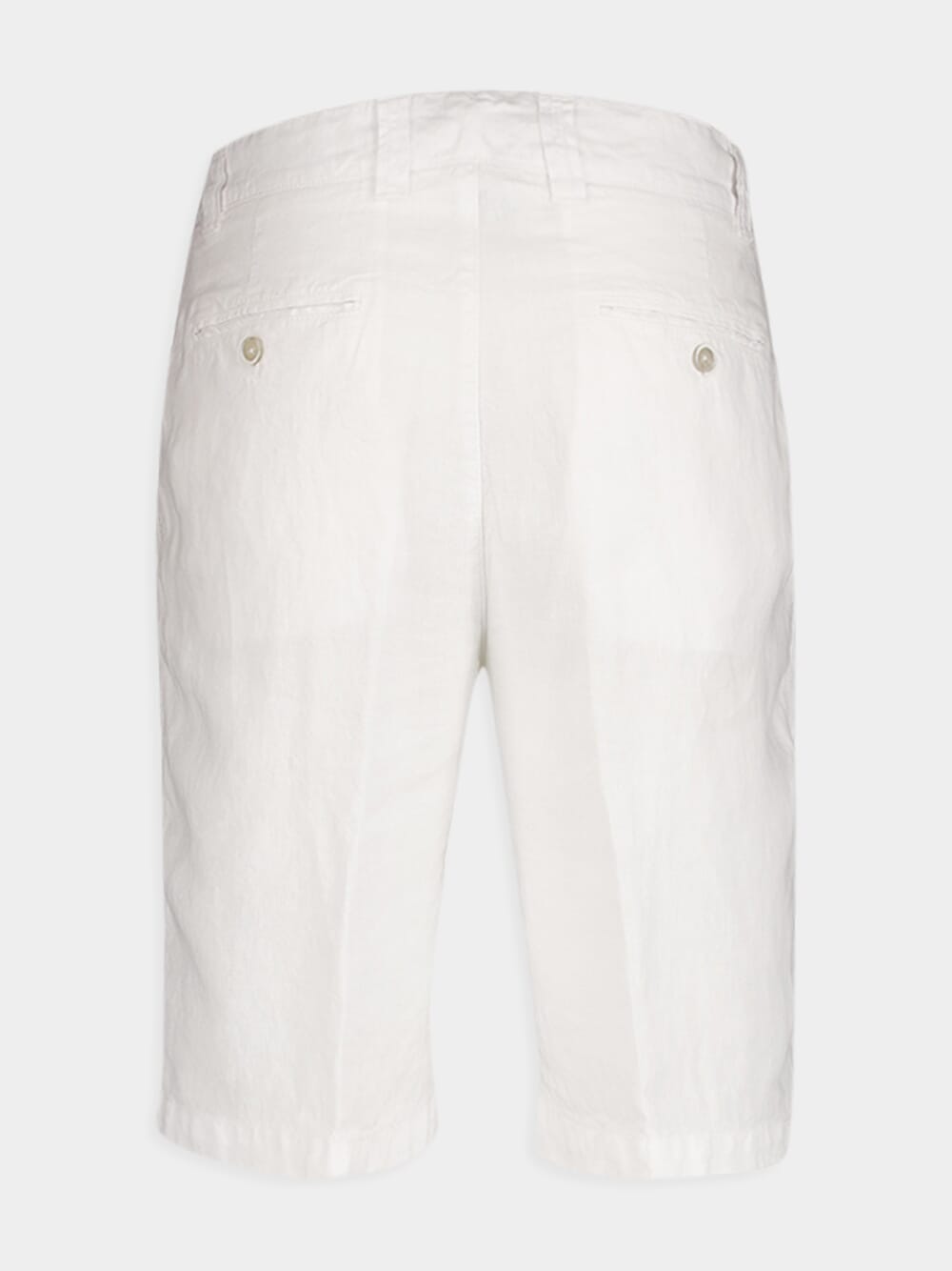 These white linen Bermuda shorts are a testament to timeless style and comfort. Designed with a relaxed fit, they are perfect for achieving a chic, yet laid-back summer look. Their versatile shade ensures they pair well with everything, making them a staple for the sophisticated wardrobe.