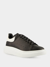 Elevate your sneaker collection with these Off-White and Brown Oversized Sneakers by Alexander McQueen. Crafted in Italy from premium calf leather, they feature a statement silhouette with a contrasting brown heel counter adorned with the iconic McQueen logo. Designed for both style and comfort, these sneakers are finished with a chunky oversized rubber sole and a classic round toe. An additional pair of shoelaces is included for versatility. A bold yet sophisticated choice for modern wardrobes.
