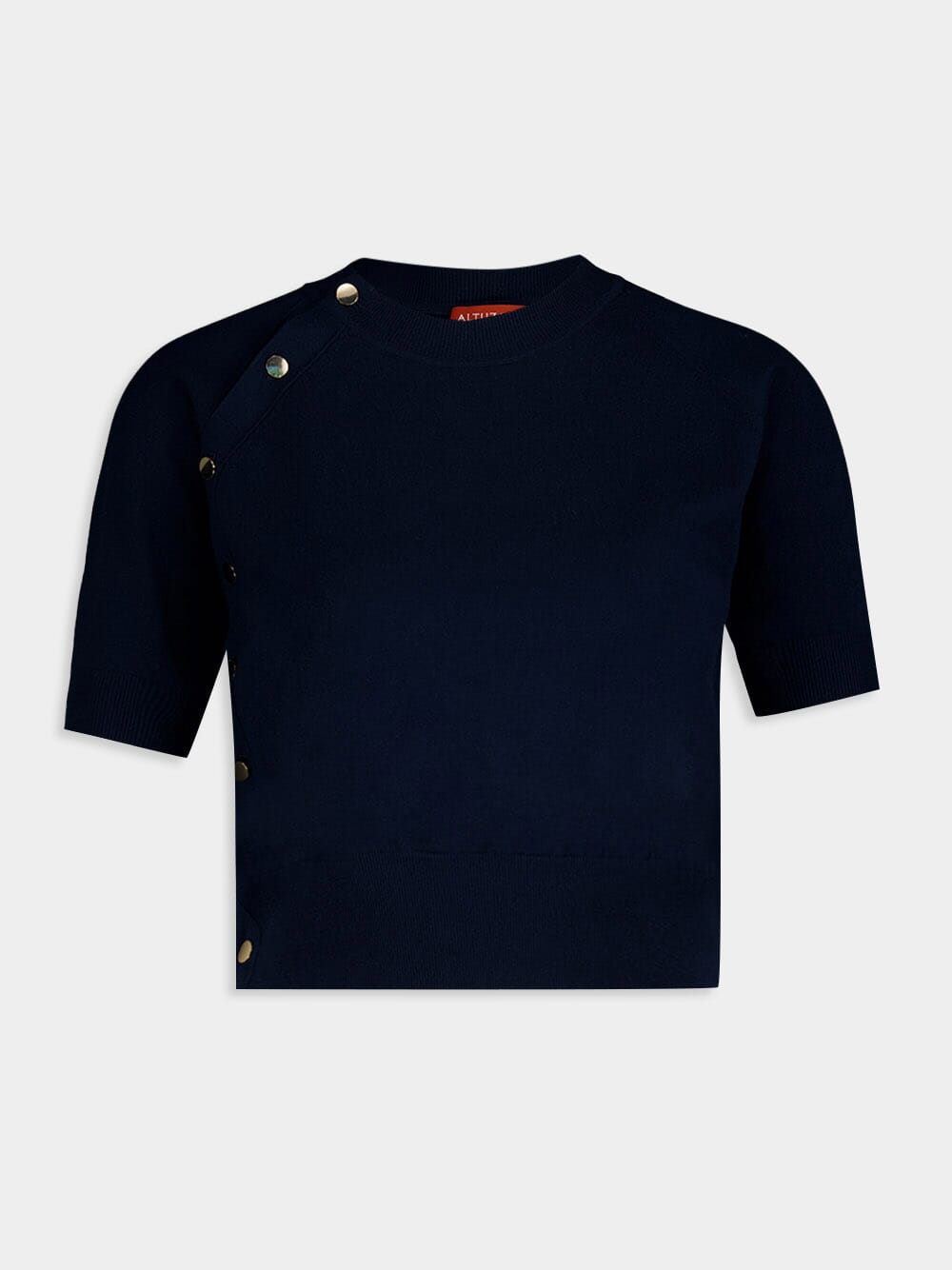 A chic blend of comfort and style! The round neckline and short sleeves offer a modern twist, perfect for transitional seasons. The button side closure adds a touch of versatility, allowing you to customize your look effortlessly. Finished with ribbed trims for a polished effect, this sweater is a must-have for those seeking a contemporary and cozy fashion statement.
