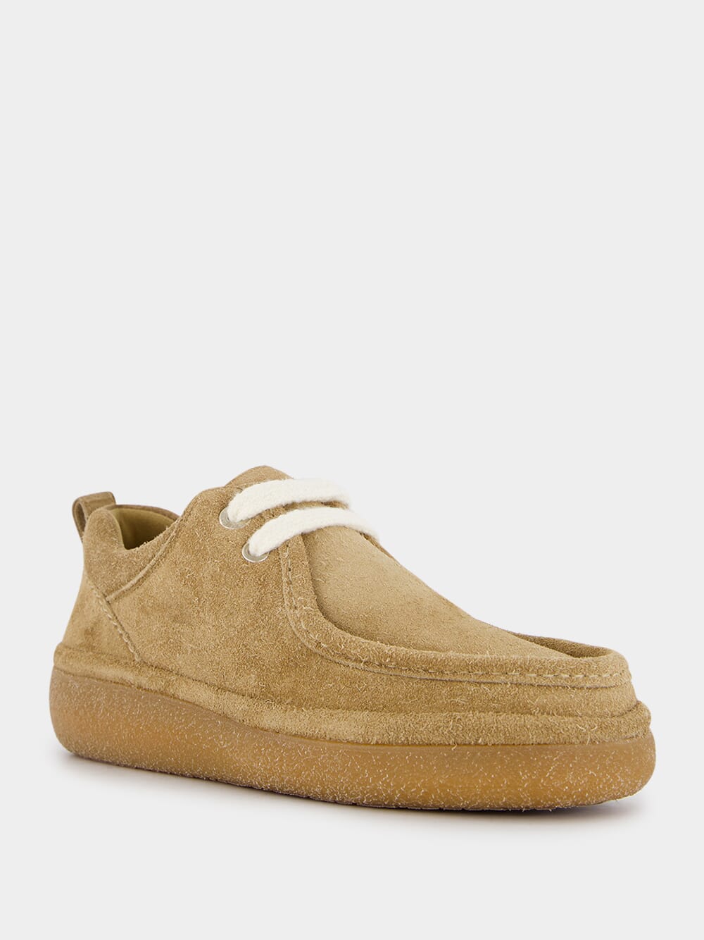Desert Suede Boots, meticulously crafted from luxurious suede for a timeless, stylish look. Featuring exquisite moc stitching and a classic round toe design, these boots offer both sophistication and comfort. The front lace-up fastening ensures a secure fit, while the branded insole adds a touch of quality. With a convenient pull-tab at the heel and a durable flat rubber sole, these boots are perfect for any adventure.