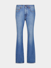 This MA Quad Embroidered Flare Jean in Antique Indigo redefines classic denim with scattered degradé embroidery featuring the iconic MA Quad monogram. Part of the Spring-Summer 2025 collection, this design blends vintage-inspired flair with contemporary elegance. The flare-leg cut and five-pocket construction offer a timeless yet modern silhouette, making it a versatile staple for any wardrobe. Whether dressed up or down, these jeans bring effortless sophistication to any look.