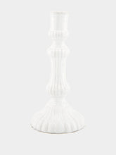 A striking piece from a collection celebrated for its bold forms, the Peggy Candlestick is defined by its dynamic volume, twists, and striated undulations. Handmade in Paris, this ceramic candlestick blends organic curves with sculptural elegance, offering a unique presence that enhances any space. Its intricate design and textured surface make it a standout object, perfect for adding an artistic touch to your décor. Stamped with the Astier de Villatte monogram and the initials of the artisan who crafted it, it’s a true expression of craftsmanship.