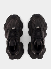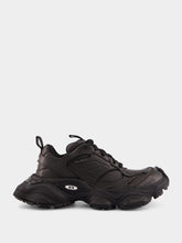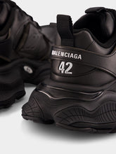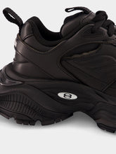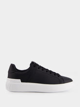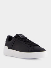 The Black Cargo Leather Sneakers offer a bold and contemporary look with a faux leather upper and durable rubber sole. Featuring a lace-up front, these sneakers are detailed with the Balenciaga logo on the outsole, back, and tongue. A metallic plate with engraved logo decorates the upper, while the B sports icon artwork is embossed on each side. The shoe size is marked at the edge of the toe and back for a distinctive touch. A perfect blend of luxury and urban style.