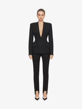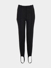 These black high-waisted tailored pants feature a sleek satin waistband with a layered effect, adding a touch of sophistication. Made from 100% wool with a viscose detail, they include two side pockets and decorative lines, making them a refined option for formal and elegant occasions.