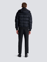 This black cropped padded jacket by Balmain features a sophisticated tone-on-tone PB Labyrinthe monogram jacquard. Crafted from 100% polyamide, it includes a high neck, detachable hood and sleeves, and signature Balmain Écusson embroidery on the sleeve. Ribbed trims, press-stud side pockets, and a sleek zip closure with engraved metal slider complete the look. A lined, structured piece designed for statement layering in cooler seasons.