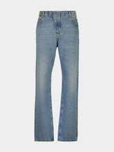 These regular-fit jeans in classic blue denim offer a refined balance of style and ease. Featuring a structured waistband with belt loops—including a distinctive triple loop at the back—they are completed with a five-pocket design, engraved silver rivets, and a woven vintage Balmain label. Crafted in Italy from pure cotton, they provide a timeless foundation for modern wardrobes.