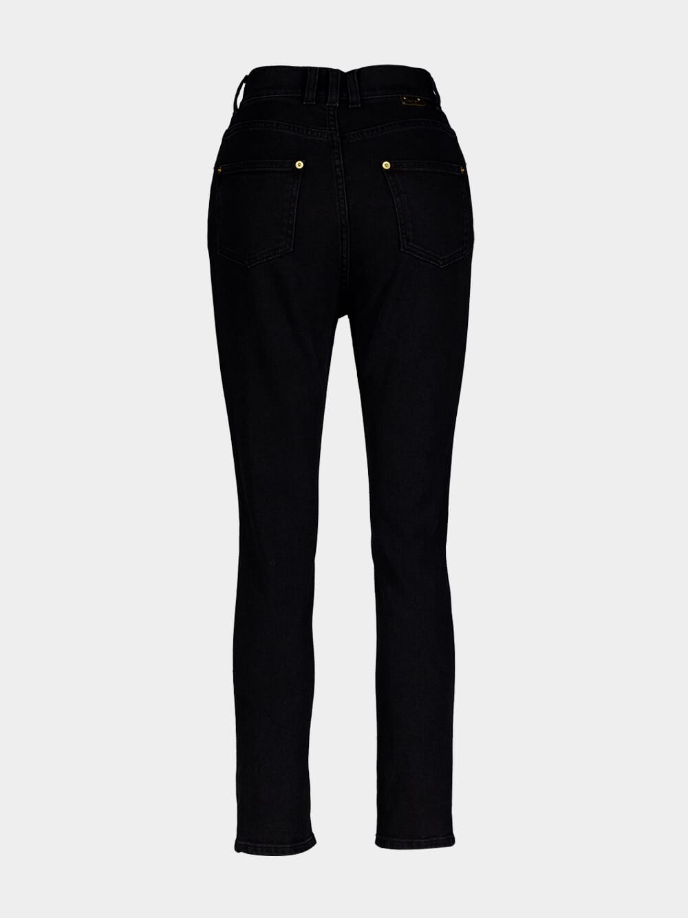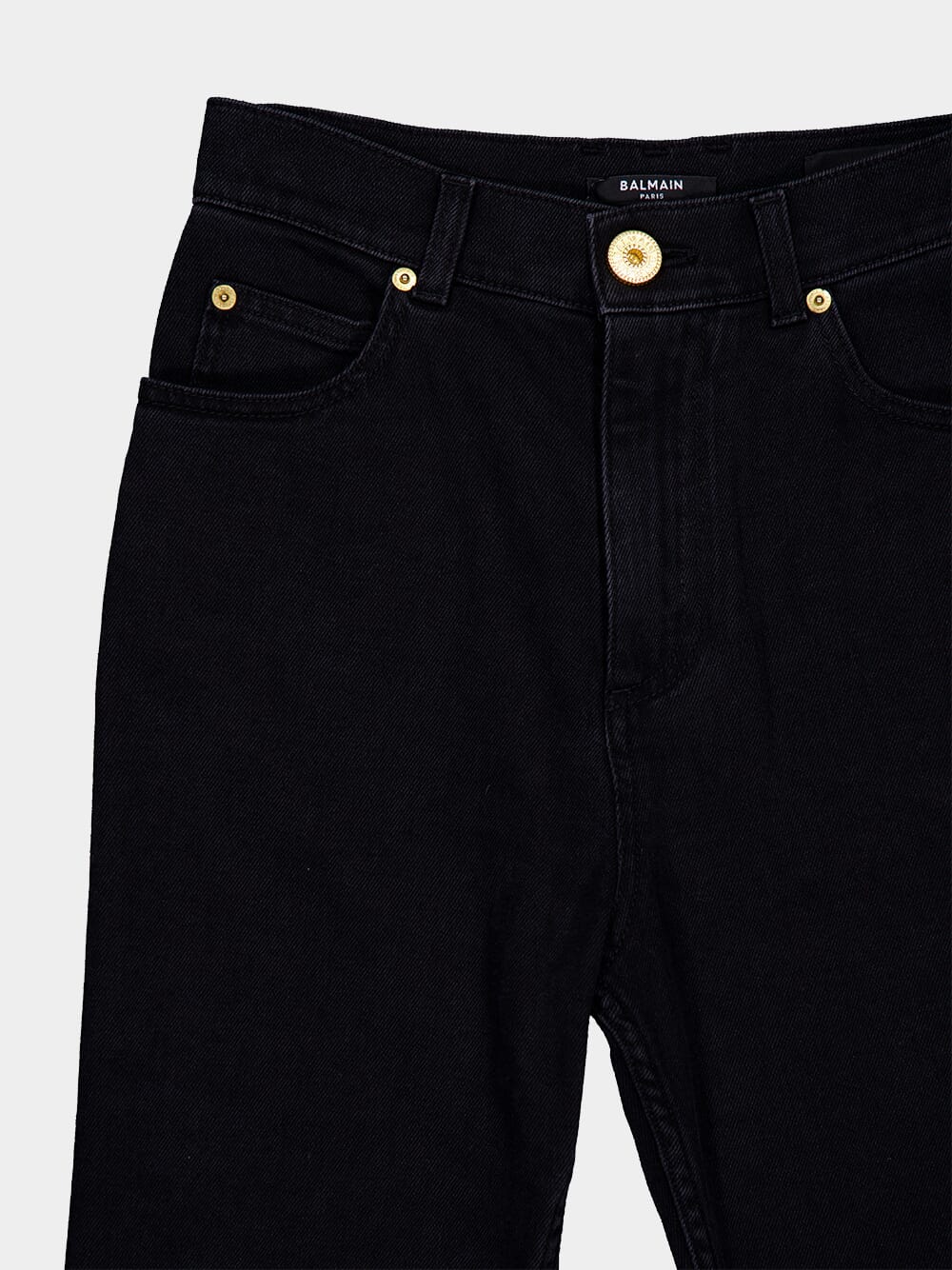 Elevate your denim game with Balmain's High-Rise Slim-Cut Jeans, a sleek fusion of style and comfort. Crafted in stretch-cotton, these black jeans boast a flattering high waist and slim cut, offering a contemporary silhouette. The front button and zip fastening provide a secure fit, while the classic five-pocket design adds a timeless touch. Redefine your wardrobe essentials with these versatile and on-trend slim-fit jeans.