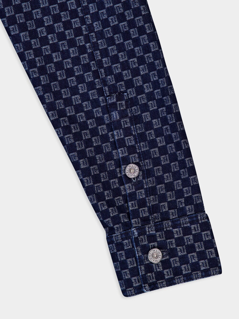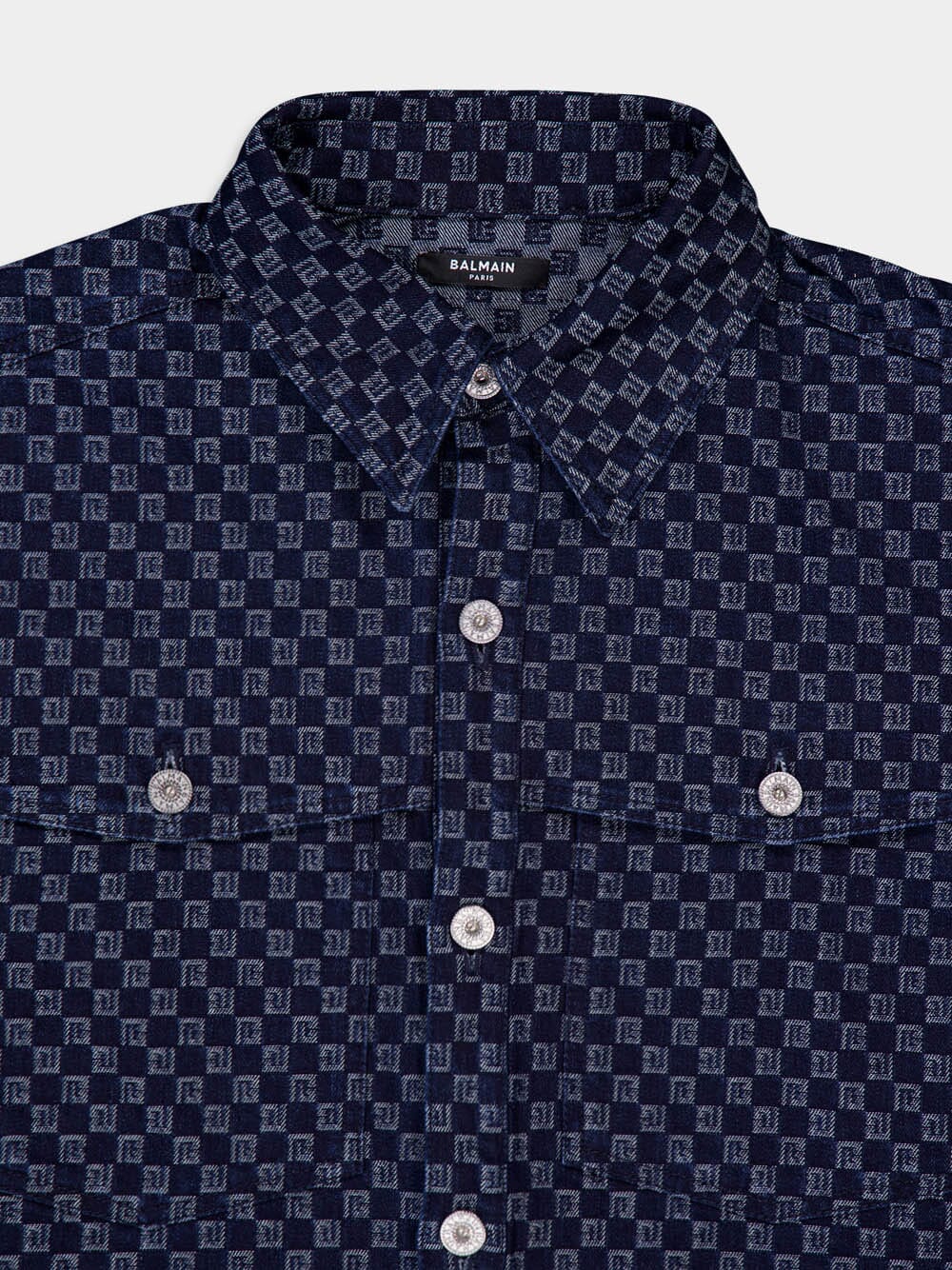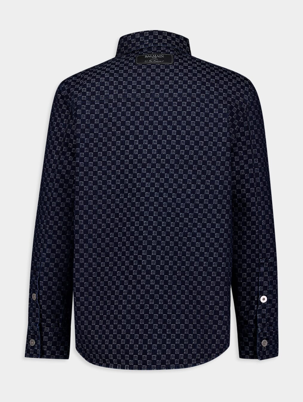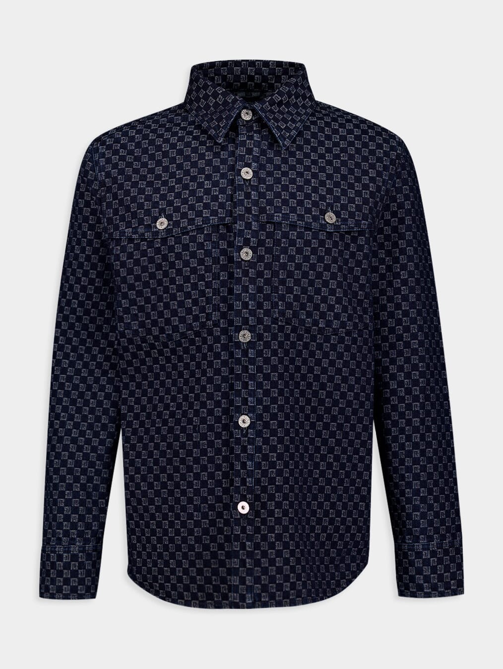 Monogram-Jacquard Cotton Denim Shirt crafted from premium cotton denim, this shirt showcases a sophisticated monogram jacquard pattern. It boasts a classic collar, front button fastening, and long sleeves with buttoned cuffs for a tailored look. With two button-fastening chest pockets and a stylish curved hem, this shirt is a versatile addition to your wardrobe.