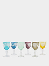 This exquisite set of six goblets, showcasing a symphony of blue and green hues, brings elegance to any table setting. Each piece is meticulously crafted with unique textures and a graceful silhouette, making them perfect for intimate dinners or luxurious gatherings.