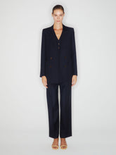 This First Class Navy Everyday Blazer is a sophisticated wardrobe essential crafted from a luxurious blend of wool and mohair. Featuring a double-breasted design with structured shoulders, it offers a regular fit for a timeless silhouette. The sharp lapels, front flap pockets, and refined button details add a polished finish, making it suitable for both professional and elevated casual settings. A versatile staple, this blazer seamlessly blends modern tailoring with classic elegance.