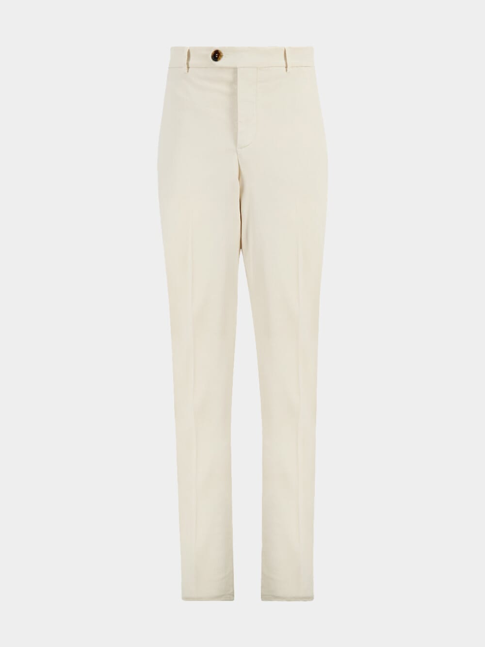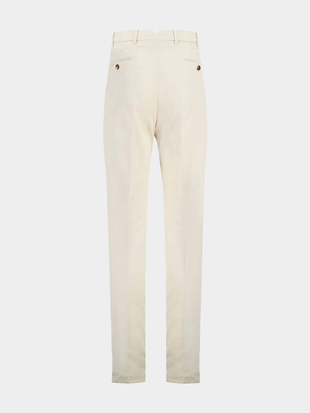 Brunelllo Cucinelli off-white cotton classic chinos with italian fit and slanted front pockets.