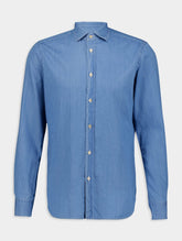 Brunello Cucinelli white lightweight chambray cotton classic shirt.