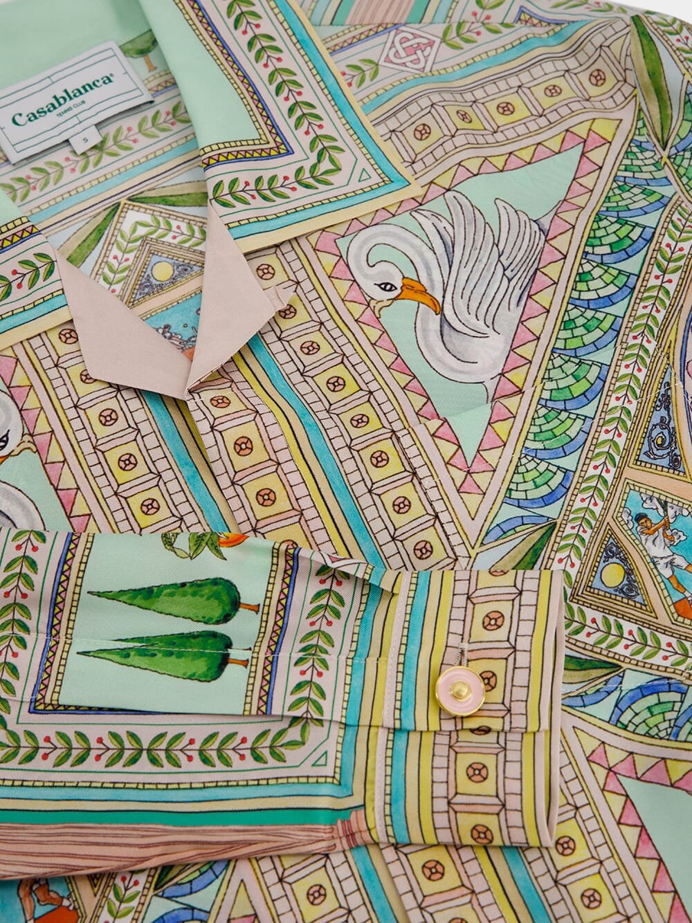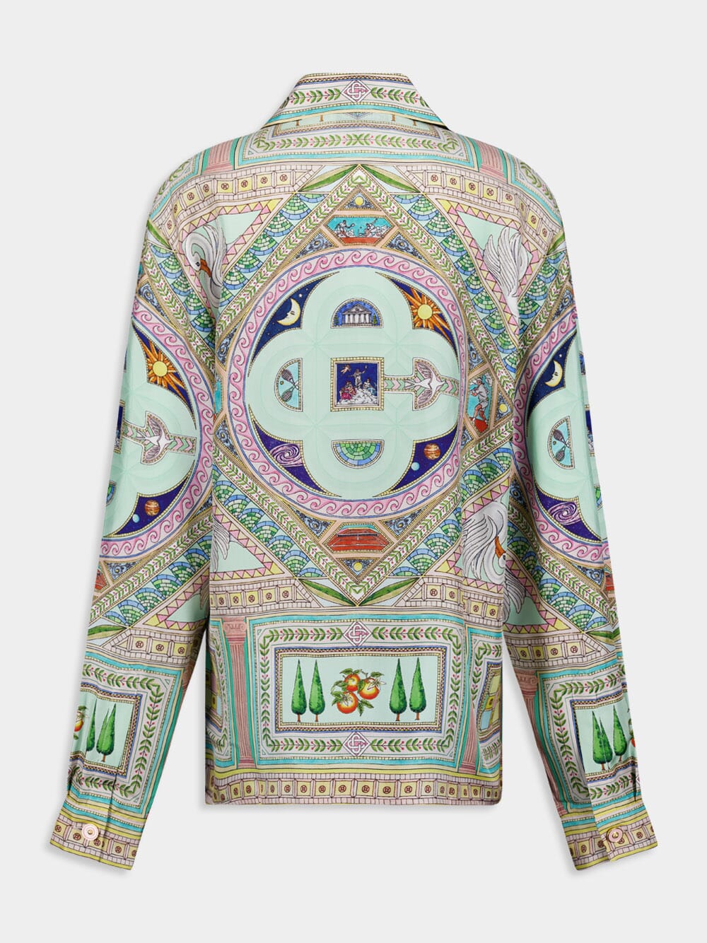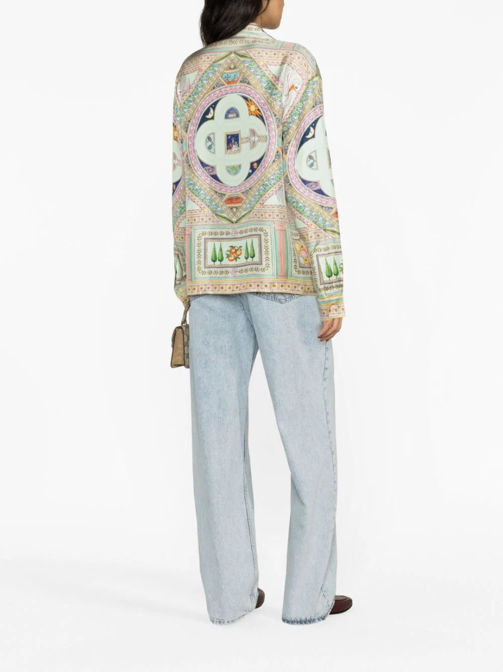 Le Labyrinthe-Print Silk Shirt, meticulously crafted from luxurious silk. This shirt showcases an all-over graphic print, adding a touch of uniqueness to your wardrobe. Designed with a classic collar and a front button fastening, it's both timeless and elegant. The long sleeves with buttoned cuffs, along with the chest patch pocket, complete the sophisticated look.