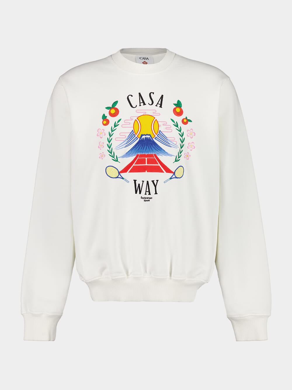 These off-white sweatshorts by Casablanca are made from organic cotton and feature the distinctive Casa Way Mountain print. Designed for a relaxed silhouette, they include an elastic waistband with drawstring for optimal comfort. A statement in refined leisurewear, ideal for warm-weather dressing with a sporty-luxe twist.