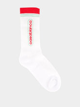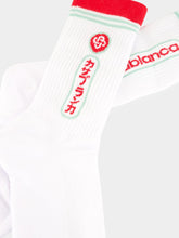 The White Fuji Dream socks by Casablanca bring athletic style with a touch of playful luxury. Crafted in Italy from a soft cotton-blend, they feature ribbed legs and the house's seasonal artwork in bold red and mint green. Designed for comfort and statement appeal, they are ideal for elevating casual looks.