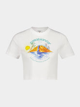 The Oasis cropped t-shirt is made from 100% organic cotton in a crisp white tone. Showcasing the house’s seasonal artwork with vivid motifs of nature, architecture, and tennis, this short-sleeve piece brings a fresh visual narrative to casualwear. Designed with a classic crew neck and a cropped fit that sits above the navel, it's a perfect fusion of comfort and summer elegance.