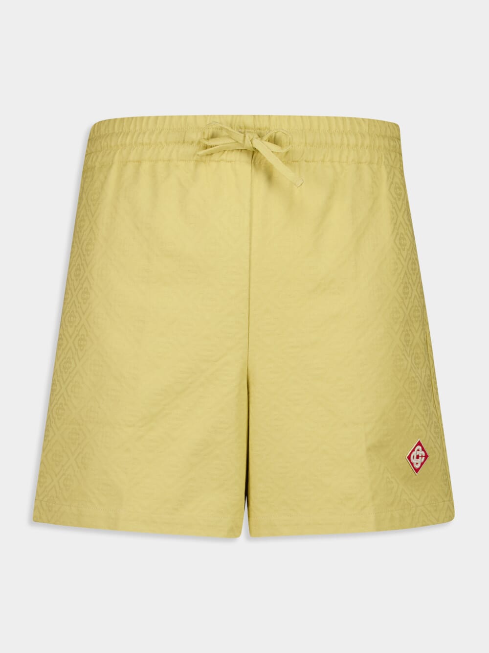 Yellow Short Sleeve Button-Up Monogram Cotton Shirt