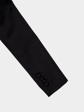 This Black Double-Breasted Duchess Jacket by Dolce&Gabbana is a powerful statement piece crafted from lustrous satin with a structured, tailored silhouette. Inspired by 1950s lingerie, it features sculpted conical bra cups, peak lapels, and flap pockets. The stretch satin lining ensures a smooth fit, while button fastenings refine the waist. A bold yet elegant design that merges heritage glamour with contemporary sensuality.