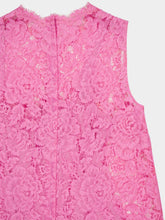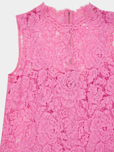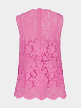 Crafted in delicate pink cordonetto lace, this sleeveless top embodies timeless femininity and Sicilian elegance. Featuring a round neckline and scalloped hem, it is underpinned with a stretch silk crepe de chine lining for luxurious comfort. The regular fit is enhanced by a discreet back zipper, offering a refined silhouette perfect for layering or wearing solo. A signature piece from the DNA collection, blending simplicity with sensual sophistication.