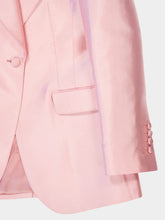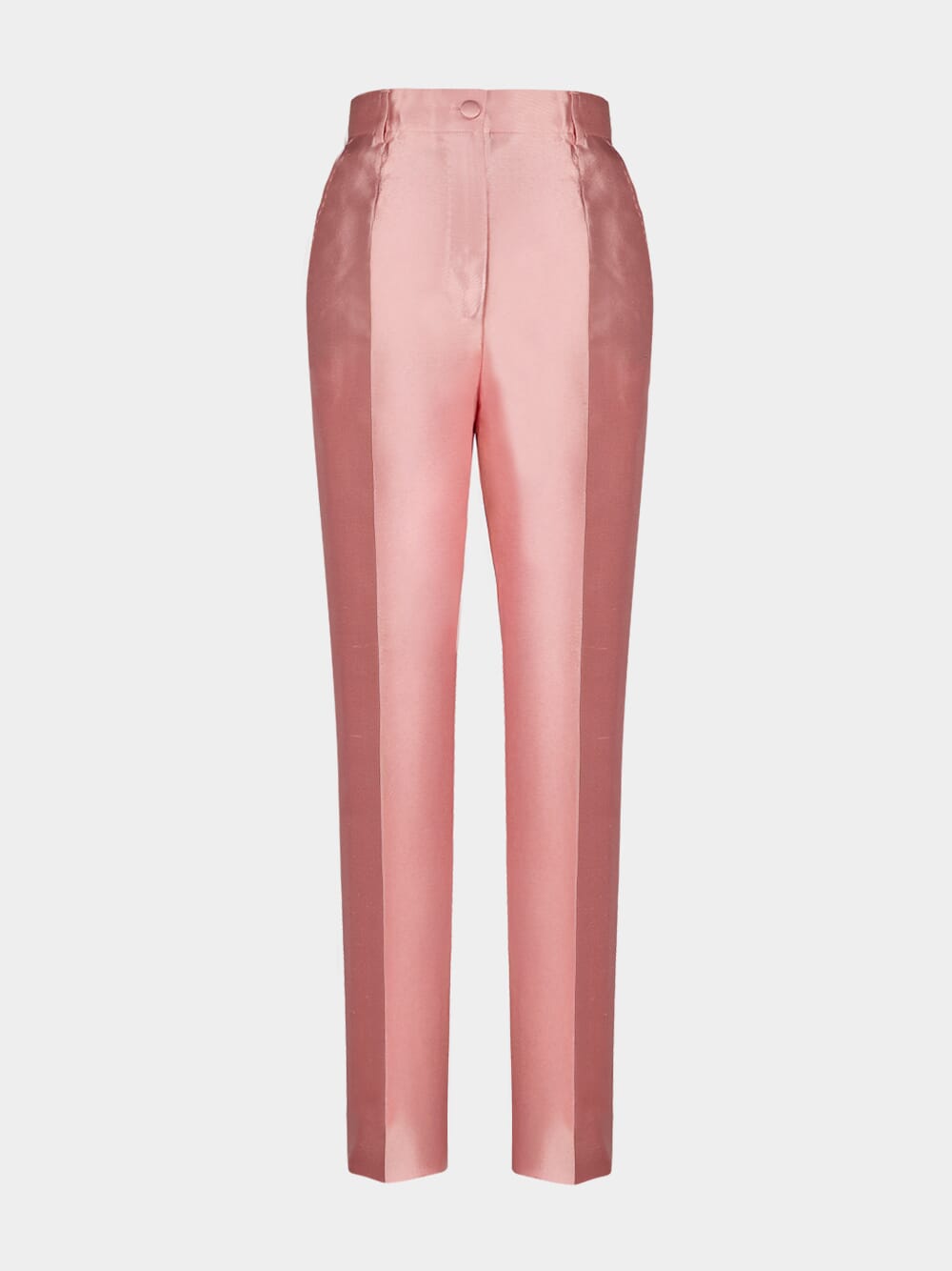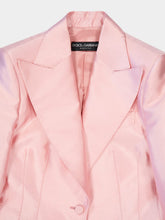 This pink single-breasted blazer by Dolce&Gabbana is crafted from luxurious silk shantung, known for its subtle texture and elegant sheen. Featuring peak lapels, flap and welt pockets, and a structured silhouette with a central slit, it embodies refined femininity and timeless Italian tailoring—ideal for both formal and elevated daywear.