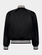 Satin Bomber Jacket, featuring a trendy baseball collar and long raglan sleeves. This jacket boasts fine-rib trims for a stylish finish and a comfortable regular fit. With convenient welt pockets, wad padding, and a satin lining, it offers both fashion and warmth. The branded press-stud fastenings add a touch of sophistication to this versatile piece.