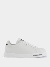 The White and Brown Calfskin Portofino Yacht Sneakers by Dolce&Gabbana blend understated elegance with contemporary style. Crafted from tumbled calfskin, these sneakers feature a branded heel cup and a leather sole, offering both comfort and durability. The sleek design includes flat laces and a calfskin footbed with a branded label, making them a versatile addition to any wardrobe.