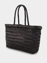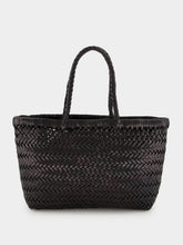 The "Mini Flat Gora" in black is a signature piece, handwoven from supple buffalo calf leather. Its compact size and lightweight structure make it perfect for essential carry, while the intricate basket weave and subtle top twist lend it a distinctive elegance. An ideal everyday companion with effortless charm. Finished with a hand-sewn St. Christopher medal, symbol of Dragon Diffusion’s artisanal authenticity.