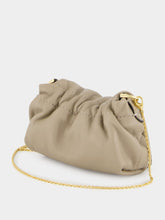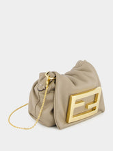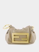 The Beige Nano Mamma Baguette Leather Bag is a miniature yet iconic accessory that embodies elegance and versatility. Crafted from soft black leather, this refined piece is adorned with the signature FF clasp and features a magnetic closure under the flap. Designed for multiple styling options, it can be attached as a charm using the clip or worn crossbody and on the shoulder with its adjustable gold-tone chain strap. Despite its compact size, it fits essentials like cards, keys, lipstick, or a Fendi mini fragrance. A luxurious Italian-made statement piece.
