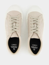 These Fendi Domino low-top sneakers are crafted from beige nubuck leather and detailed with a hot-stamped FF motif. Accented with tone-on-tone smooth nubuck trims, they feature a rubber cupsole with embossed FF branding at the toe. Made in Italy, these sneakers combine understated elegance with iconic house codes and everyday comfort.
